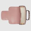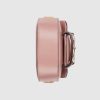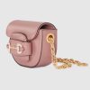 The Gucci 1955 Horsebit evolves as part of the latest collection with the addition of a belt bag variation, offering greater versatility and functionality. Presented in pink leather with a flap closure, a chain strap with Interlocking G motif completes the design.