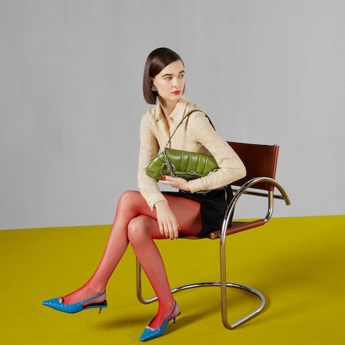 Gucci successfully recalls its past by connecting the archives to the present day. Adorned with a maxi Horsebit, first made popular during the early ‘2000s, this silhouette continues to be one of the most recognizable handbags of the House. Revisited for the Fall Winter 2023 collection, it is presented in various colors and textures that follow a contemporary approach.