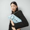 - Light blue quilted leather
