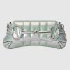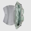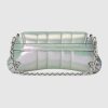 From day-time elegance to after-dark glamor, Gucci’s most beloved handbag designs are reimagined in an eye-catching iridescent quilted leather. This Gucci Horsebit Chain small shoulder bag appears in a green variation with a shiny silver-toned Double G hardware.
