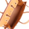 The interior is lined with Gold chevre and has one zip pocket with an Hermès engraved zipper pull and an open pocket on the opposite side.