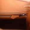 The interior is lined with Gold chevre and has one zip pocket with an Hermès engraved zipper pull and an open pocket on the opposite side.