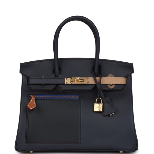 The interior is lined in classic beige herringbone canvas lining and has three interior slit pockets.