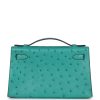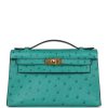Hermès Kelly Pochette Vert Verone Ostrich Gold Hardware