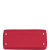 The interior is lined with Framboise chevre leather and has one zip pocket with an Hermès engraved pull and one open pocket on the opposite side.