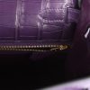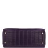 This Retourne Kelly is in Amethyst matte Mississippiensis alligator with gold hardware and has tonal stitching, front flap, two straps with center toggle closure, clochette with lock and two keys, single rolled handle and removable strap.