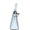 The interior is lined with Bleu Brume lambskin leather and has one open pocket on the back wall.