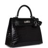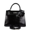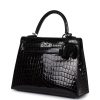 Hermès Kelly Sellier 25 Black Shiny Niloticus Crocodile Palladium Hardware