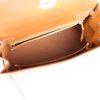 The interior is lined with gold chevre leather and has one zip pocket with an Hermès engraved pull and one open pocket on the opposite side.