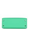 This Kelly, in the Sellier style, is in vert comics epsom leather with palladium hardware and has tonal stitching, two straps with front toggle closure, clochette with lock and two keys, single rolled handle and removable shoulder strap.