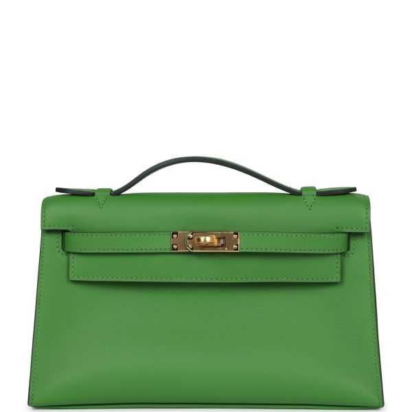 The interior is lined with Gold swift leather and has one slip pocket and one zip pocket.