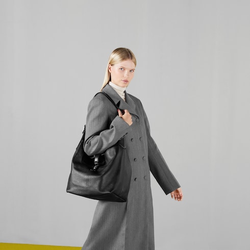 The Jackie 1961 is a symbol of the House’s ever-evolving design narrative, here it appears with a new soft silhouette as part of the men’s collection, shining light on the unmissable piston hardware. A long shoulder strap completes the design, allowing for versatile ways to wear. This small sized version is crafted from black leather.