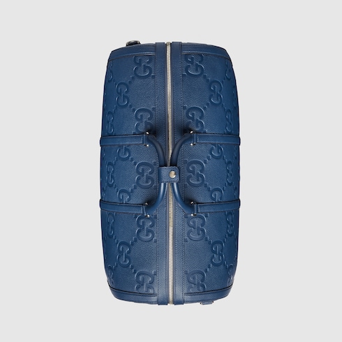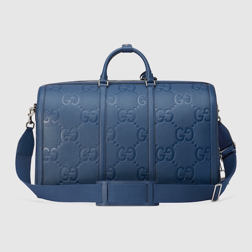 The jumbo GG continues to enrich the latest collections with a maxi version of the House logo. For Spring Summer 2024 the well-known motif in blue speaks to the start of the warmer season. Here it defines this duffle bag with top handles and adjustable shoulder strap.