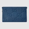 The jumbo GG continues to enrich the latest collections with a maxi version of the House logo. For Spring Summer 2024 the well-known motif in blue speaks to the start of the warmer season. Here it defines this pouch with two card slots.