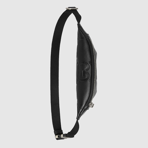 The all-black jumbo GG design returns for Pre-Fall 2023 atop a selection of leather luggage pieces. A reinterpretation of Guccio Gucci's initials, the motif is an evergreen of the House that appears prominently in maxi size for an eye-catching logo feel. This small belt bag in the emblematic leather can be worn cross-body for multiple ways to wear.