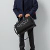 Ideal for travels and other occasions, the House’s iteration of the popular lightweight material, canvas, is presented on totes, clutches, and bucket bags in every size. This black duffle bag features the ‘Gucci Made in Italy’ print across the front with a dark blue leather trim.