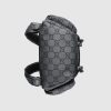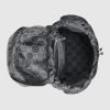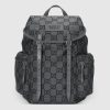 Introduced for Cruise 2024, the main characteristic of the new ripstop recycled polyester is the GG logo. The fabric is lightweight thanks to the play of yarns and of a high quality, allowing styles to remain unlined. The final result is technical yet elegant accessories that offer practicality with a modern feel. Here it appears in dark grey and black atop this backpack, complete with a Gucci Made in Italy patch.