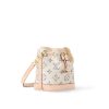 This exclusive edition of the Nano Noé is crafted from Monogram jacquard fabric with a tweed-like appearance. A mini replica of the iconic Noé bag, this model is complemented by natural leather trim on its base, drawstring closure and removable, adjustable shoulder strap. Its handle, which is also removable, is a laced, gold-tone chain.