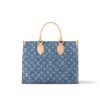 The OnTheGo MM tote bag is offered in new Monogram Denim canvas with natural cowhide-leather on the top handles and handle mounts. Thanks to the square shape, the OnTheGo has a large capacity and can hold a laptop. Its rolled-leather top handles and two longer shoulder straps enable carry options.