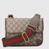 First used in the 1970s, the GG logo was an evolution of the original Gucci rhombi design from the 1930s, and from then it’s been an established symbol of Gucci’s heritage. This small messenger bag combines the signature motif with the Web stripe—a timeless pairing that pays homage to Gucci’s roots.