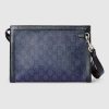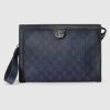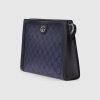 The Ophidia line is further elevated through new color combinations, resulting in a contemporary offering of signature small leather accessories. This pouch appears in a blue and dark blue variation of the GG Supreme canvas, perfectly balanced with a palladium Double G hardware.