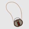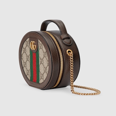 The world of Ophidia continues with new accessories introduced in signature materials and colors. This mini bag, crafted from the emblematic beige and ebony GG Supreme canvas features a chain strap so that it can be worn on the shoulder. The Web stripe completes the design with an archival touch.