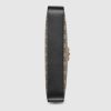 Drawing from the House’s origins as an artisanal luggage atelier, the Padlock closure features prominently on this shoulder bag in GG Supreme canvas. It is complete with gold-toned hardware, smooth black leather trim, a chain and leather shoulder strap.