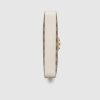 Drawing from the House's origins as an artisanal luggage atelier, the Padlock closure features prominently on this small shoulder bag in beige and ebony GG Supreme canvas, with white leather trim, and a new adjustable leather and chain strap. It is complete with gold-toned hardware and key with leather holder.