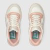 A discreet Interlocking G speaks to the subtle narrative that runs through the collection. Presented against off white leather, the motif brings the House logo to the fore in this retro-inspired sneaker design.