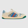 Influenced by classic trainers from the '70s, the Screener sneakers—named for the defensive sports move—feature the Web stripe on the side and the vintage Gucci logo. A new play on the House's monogram, this pair of sneakers is crafted from GG canvas with crystals in brown and blue. The House name is reinterpreted in new ways each season with a different play on its lettering.