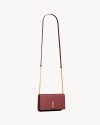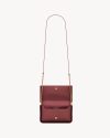 Cell phone holder with front flap decorated WITH THE CASSANDRE, featuring a leather and chain shoulder strap.