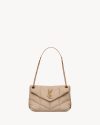 THE ICONIC LOULOU IN PUFFER VERSION, WITH CHEVRON QUILT OVERSTITCHING.